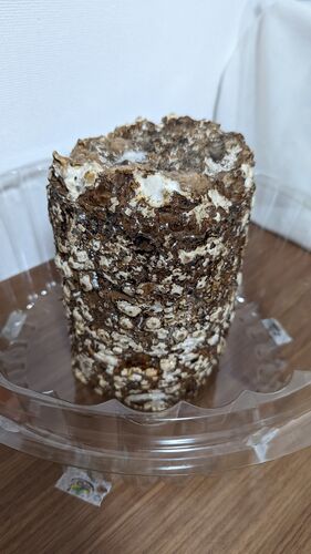 奥様からしいたけ育てられるキットがあるので買うように…と言われていたので買ってみました。 1日目リビングの一角に設置。キットには菌がついた原木らしきものが入っていて、1日1~2回ほど霧吹きで水をあげるだけ。説明書によると、しいたけのヒダの膜が切…